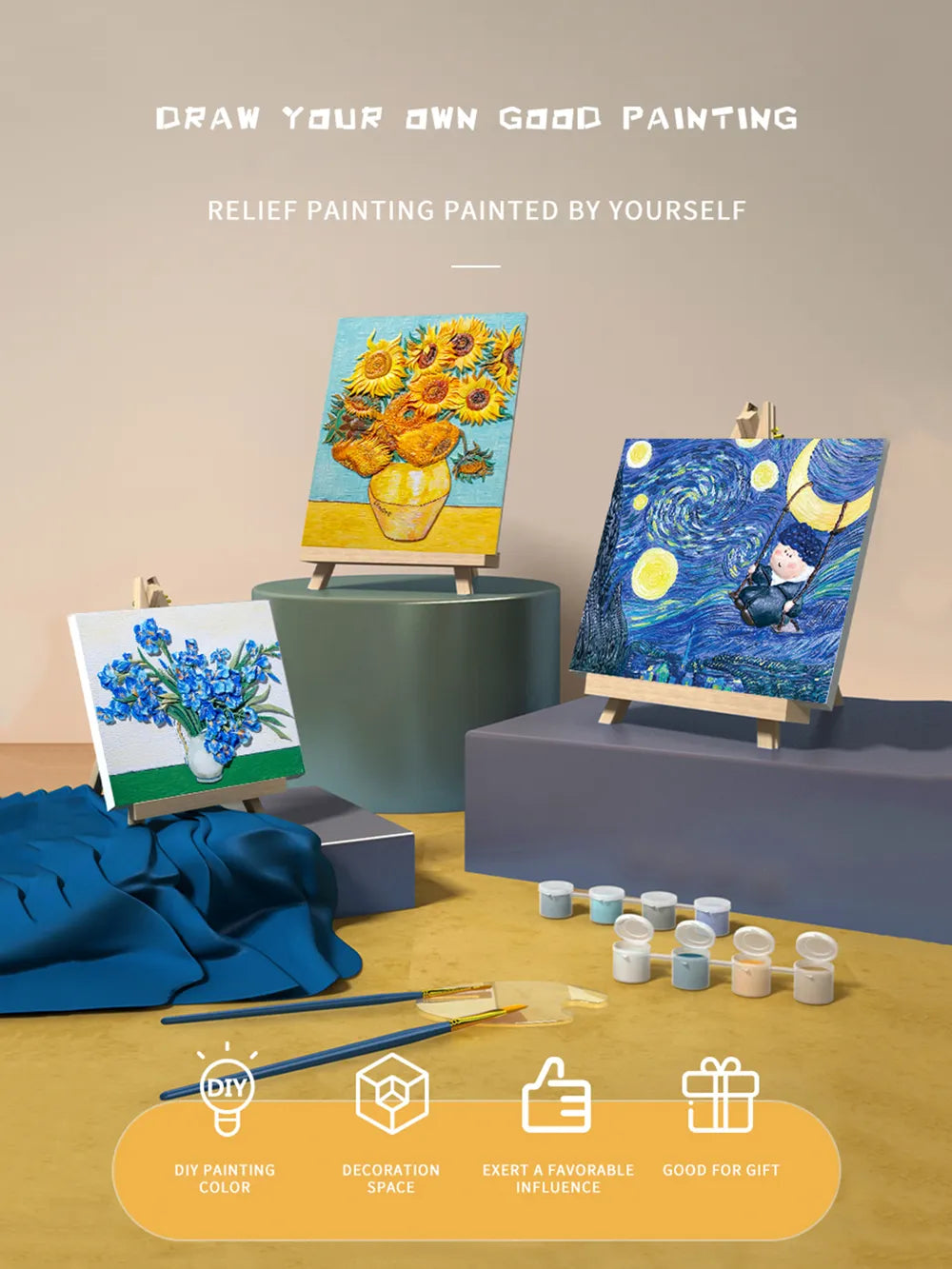 A Van Gogh's Irises DIY 3D oil painting kit is a wonderful artistic project inspired by Vincent van Gogh's beautiful irises painting. This kit typically includes a canvas with a pre-printed outline of the irises, oil paints, brushes, and instructions for painting the artwork. The 3D aspect of the painting may involve adding texture and layers of paint to create a sense of depth and dimension to the flowers and background. By following the instructions and using the materials provided in the kit, you can recreate Van Gogh's masterpiece in your own unique style. This DIY project offers a creative and relaxing way to explore oil painting and create a stunning piece of art to display in your home.